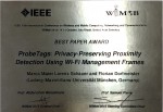 Auf der diesjährigen IEEE International Conference on Wireless and Mobile Computing, Networking and Communications (WiMob 2015), die vom 19. – 21. Oktober 2015 in Abu Dhabi, Vereinigte Arabische Emirate stattfand, erhielten Marco Maier, Lorenz Schauer und Florian Dorfmeister vom Lehrstuhl Mobile und Verteilte Systeme den Best Paper Award für: ProbeTags: Privacy-Preserving Proximity Detection Using Wi-Fi (mehr…)